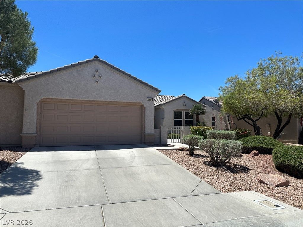 A charming single-story residence nestled within the highly desirable 55+ Sun City Anthem community. Enter through a private, welcoming front courtyard. Inside, the functional floor plan features elegant plantation shutters and a combination of tiled floors and cozy bedroom carpets. The kitchen is bright and practical, complete with solid surface countertops, a built-in desk area, and a beautiful bay window. All appliances are included for a truly move-in ready experience. Relax or entertain outdoors on the large, private covered patio. Residents enjoy access to world-class amenities like multiple clubhouses, pools, and fitness centers.